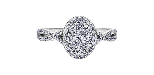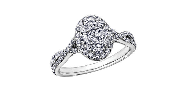 14K white gold diamond oval shaped cluster ring