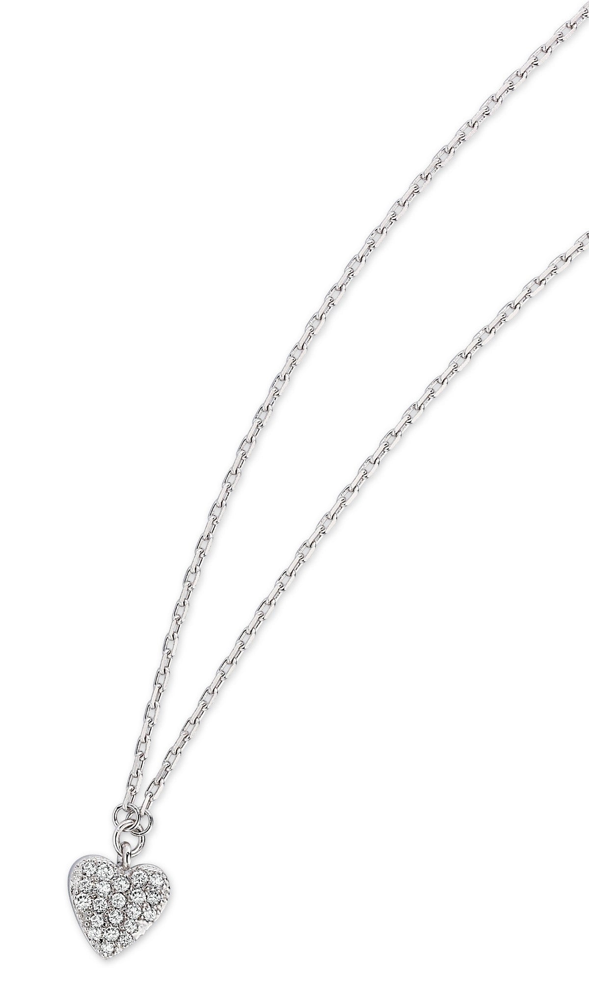 Sterling Silver Rhodium Plated Small Micro Pave Cubic Zirconia Heart Necklace 16" with 2" extender
