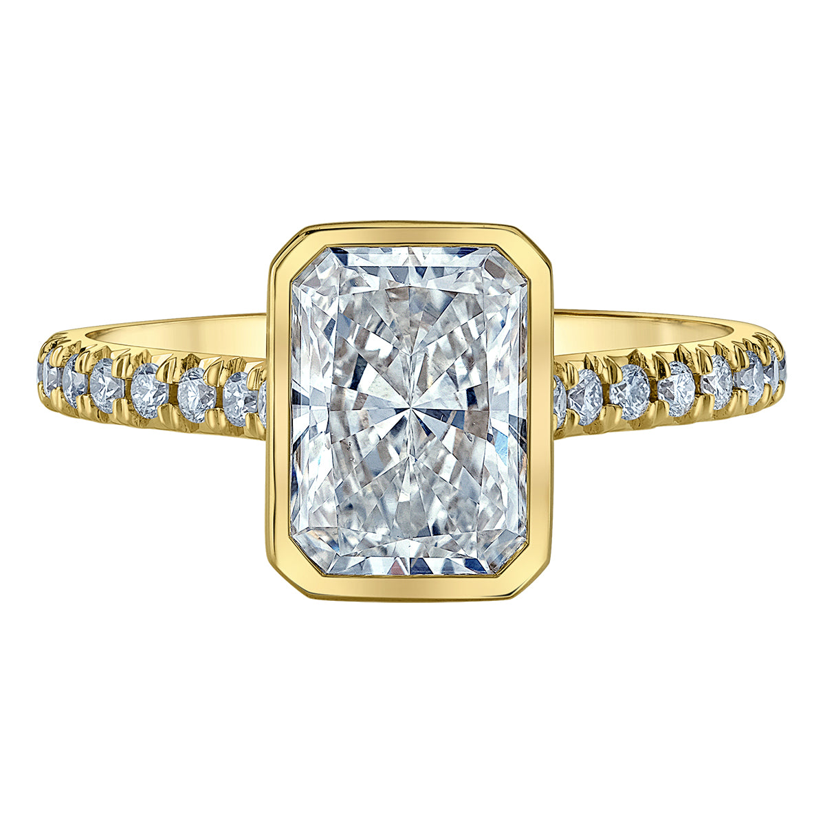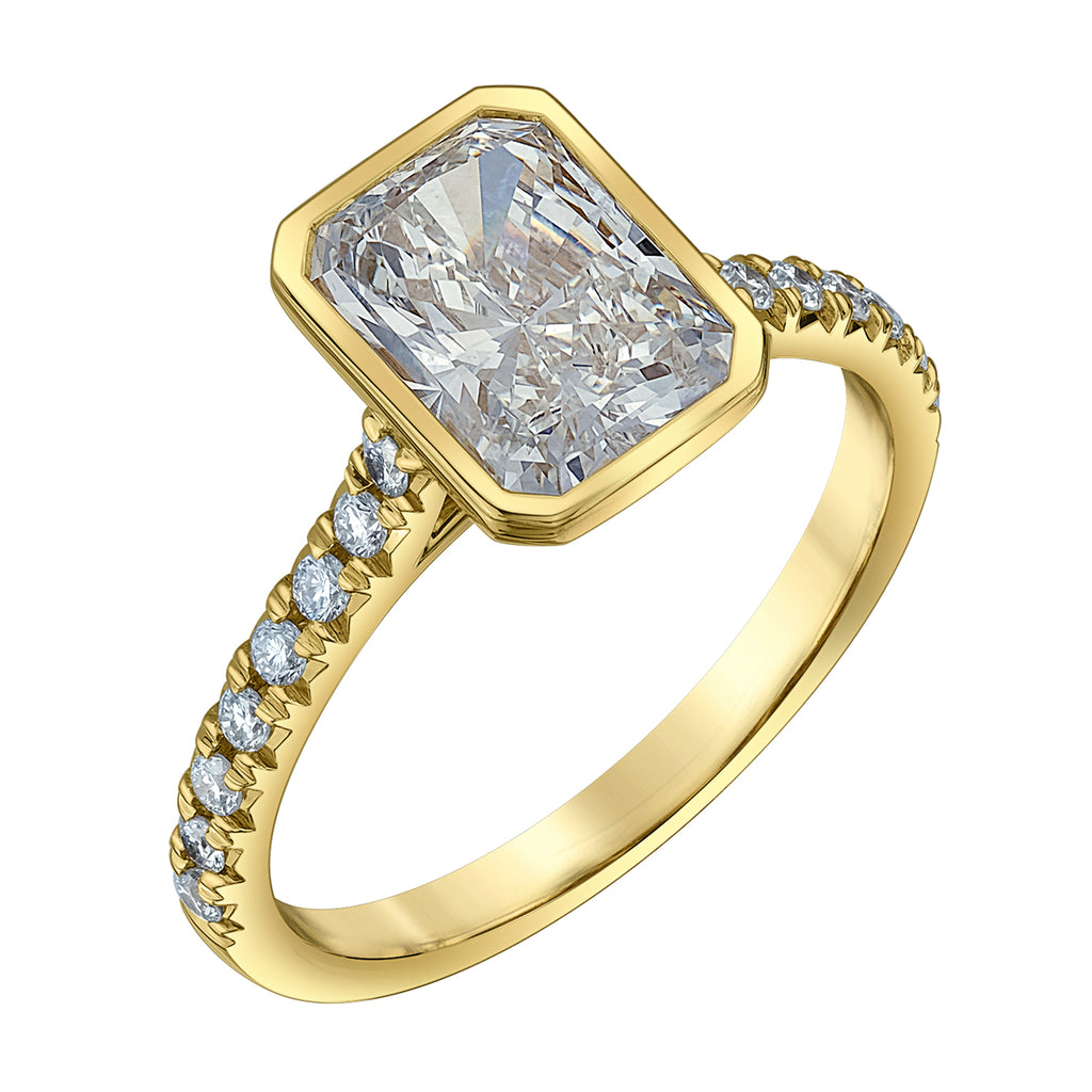 14k Yellow and White gold Lab created Diamond engagement ring containing one 2.06 radiant in the centre