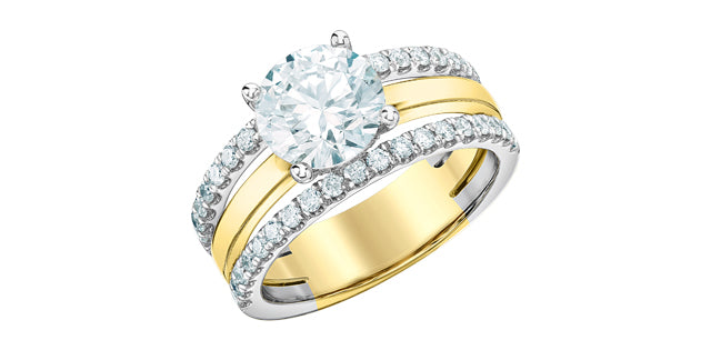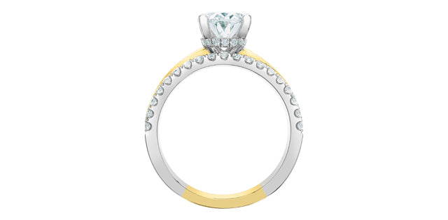 14K yellow and white gold Lab Created Diamond Engagement Ring containing one 2.08 ct round diamond
