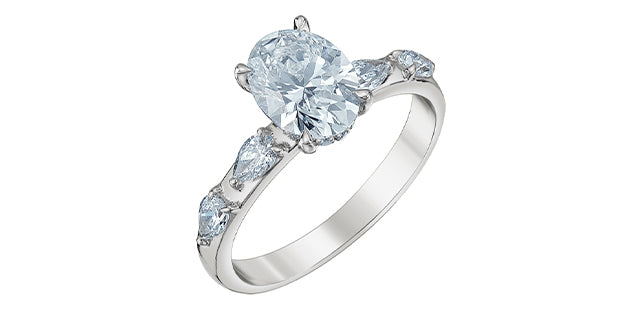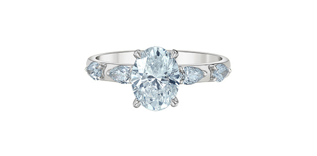 14k white gold Lab Created Diamond Engagement Ring containing one 1.50 ct oval