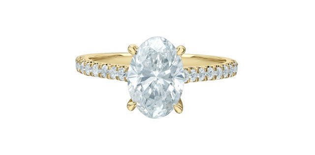 14 k yellow gold oval shaped lab diamond engagement ring with 2.01 ct diamond in the centre