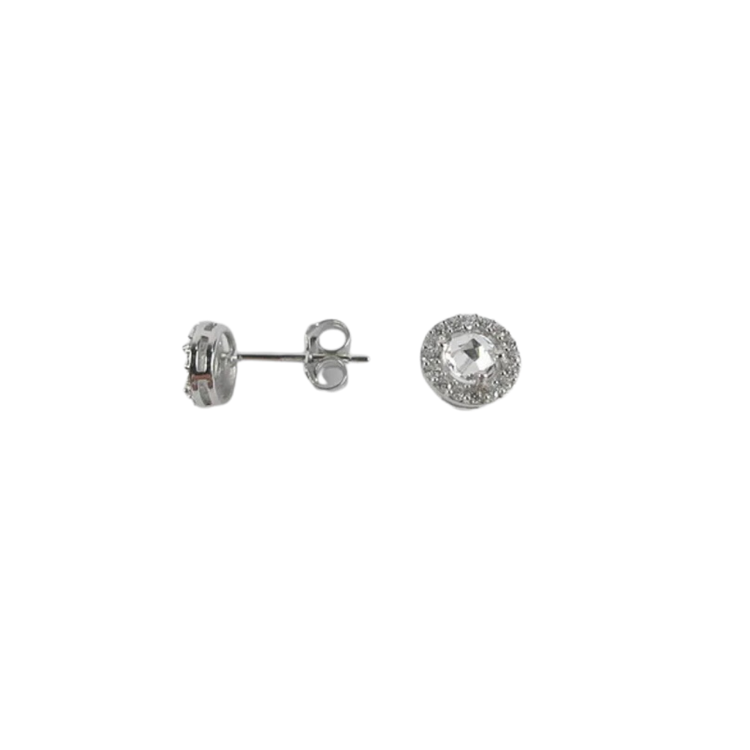 10K White Gold Stud Earrings with Cubic Zirconia 7.1mm