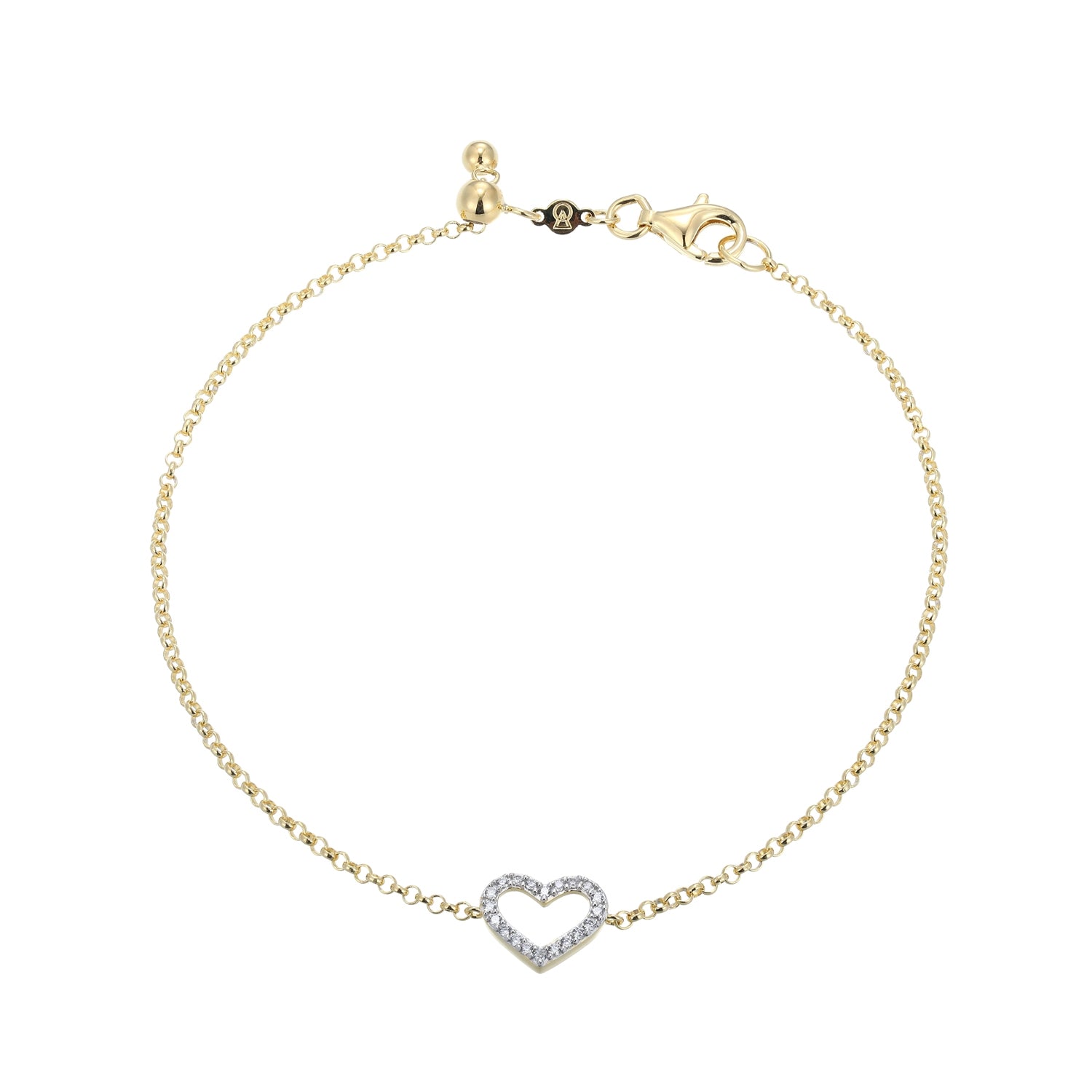 M" lab-created diamond 18K gold-plated and rhodium-plated sterling silver adjustable open heart bracelet