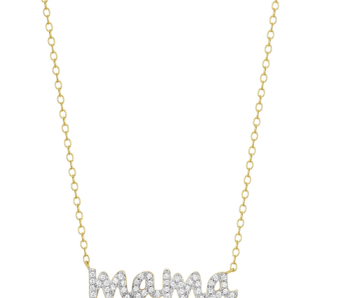 "M" lab-created diamond 18K gold-plated and rhodium-plated sterling silver mama necklace. 16+2". 1/8 CT. T.W.
