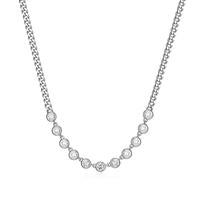 Diamondlite CZ 3mm round bezel curb chain necklace in sterling silver. 16