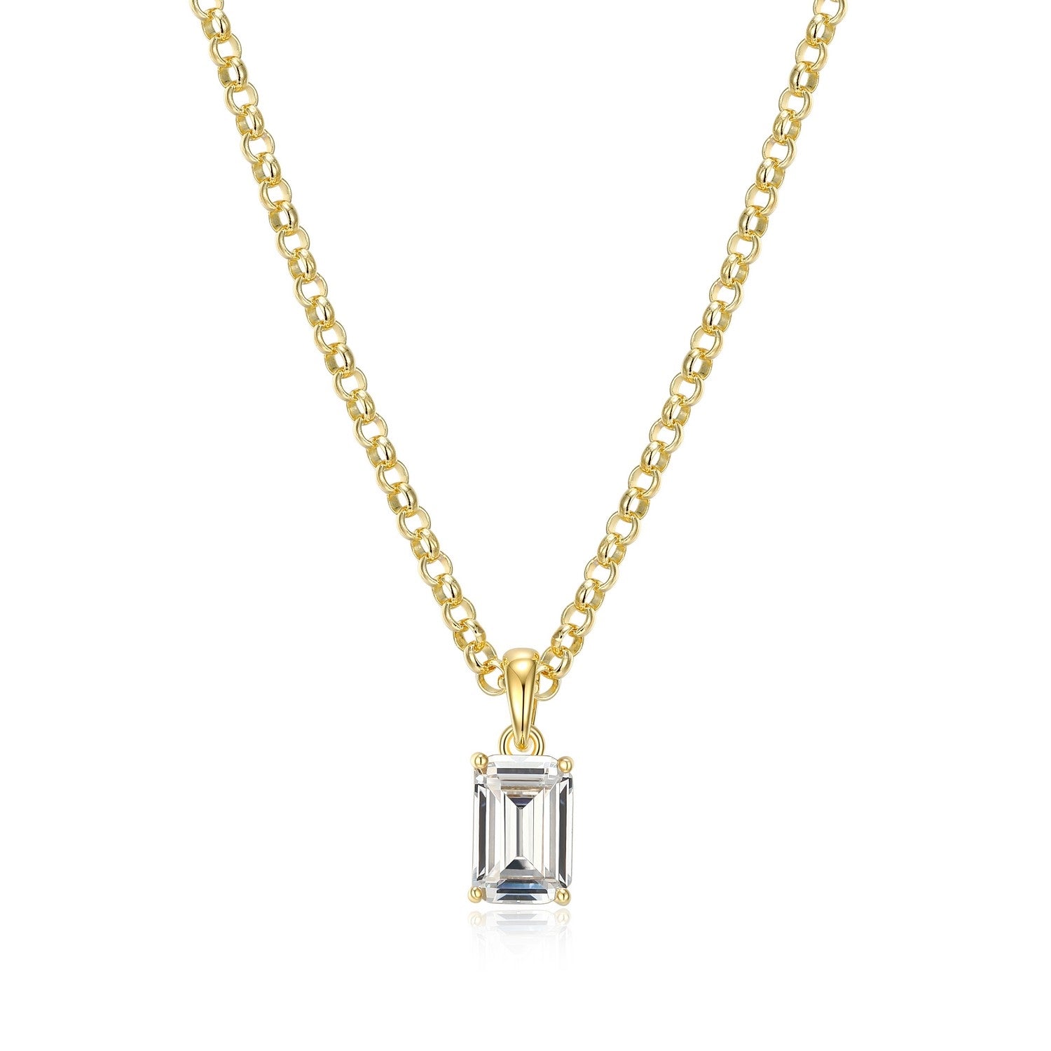 Diamondlite CZ 6x4mm emerald cut solitaire rolo necklace in sterling With Gold Plating