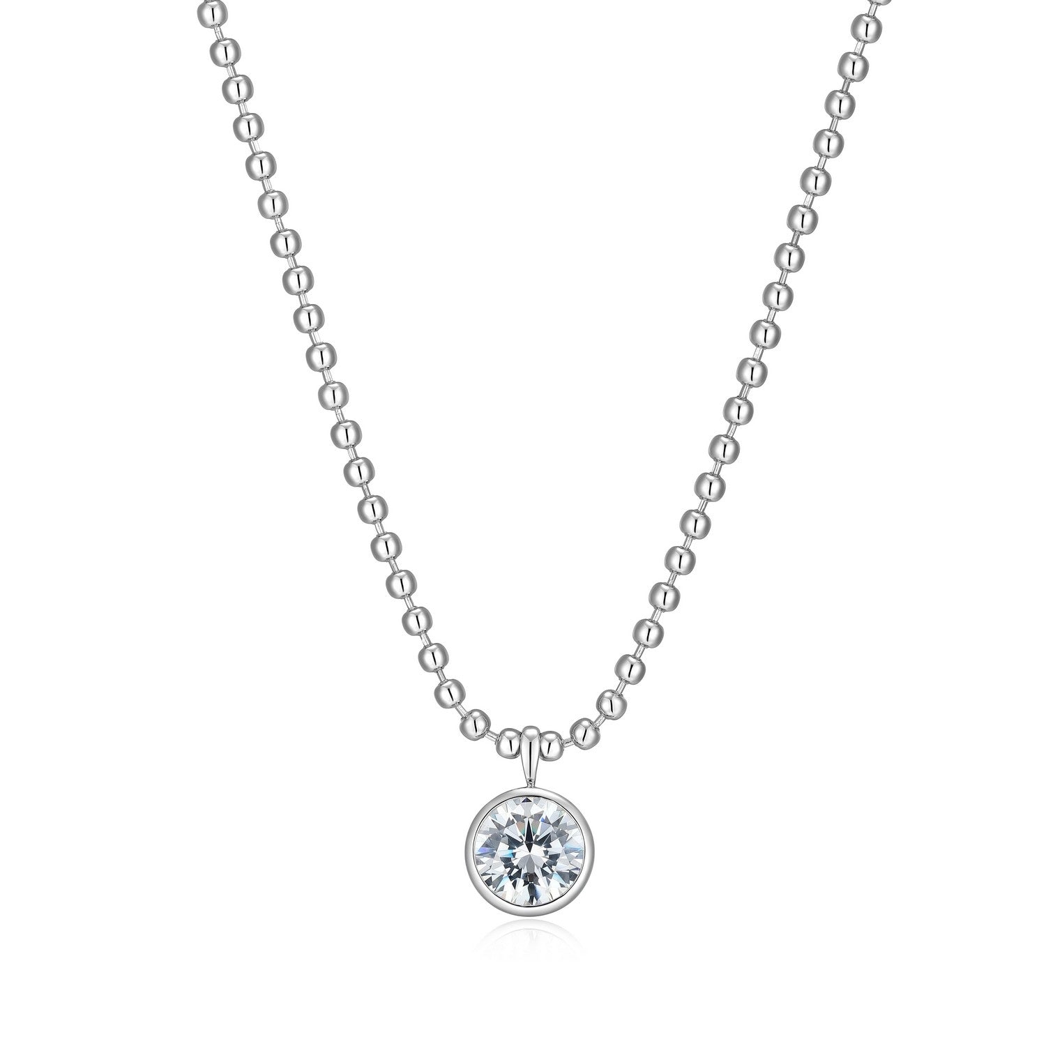 Diamondlite CZ 9mm round-cut bead chain necklace in sterling silver. 17+3".