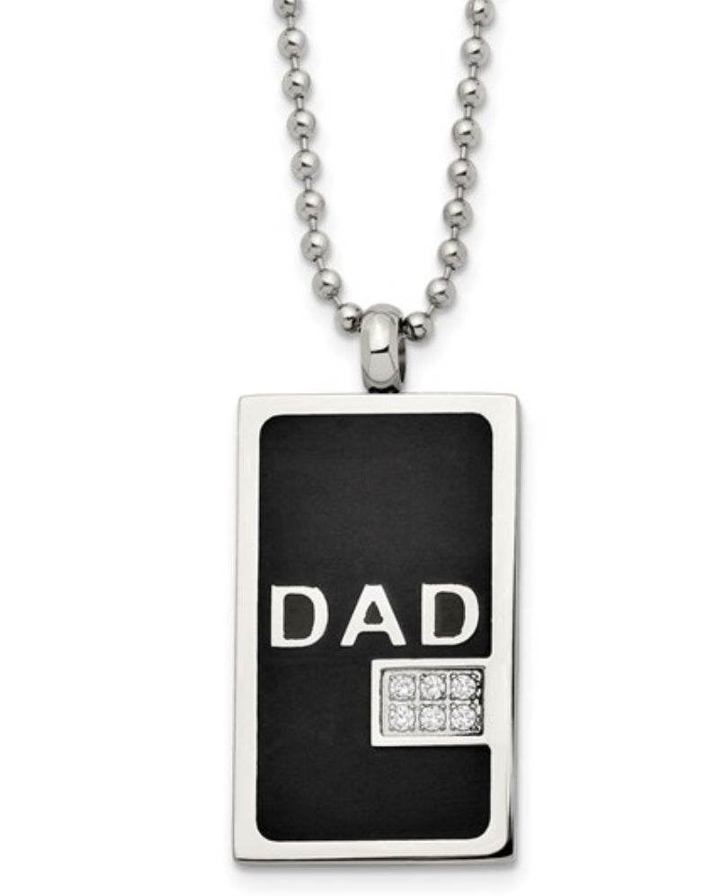 SRN956-24 Stainless Steel Polished Black Dad Dog Chain Necklace
